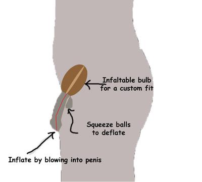 One is a packer (flacid penis that is extremely life and used to suck on) that has an inflatable "bulb" to simply hold it inside the woman, leaving her with two free hands.